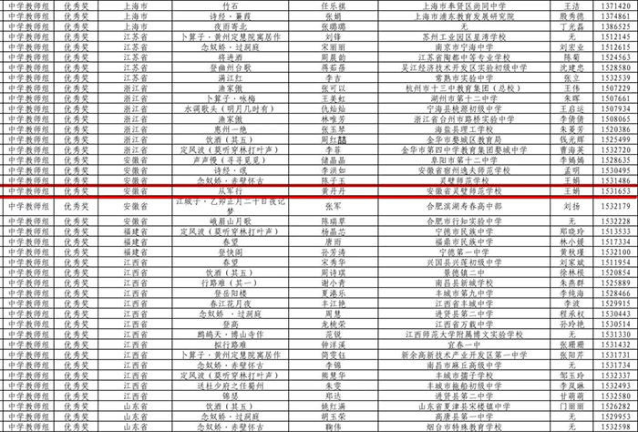 从《第六届中华经典诵写讲大赛“诵读中国”经典诵读大赛获奖名单》内容获悉,灵璧师范学校师生在教育部、国家语委主办的第六届中华经典诵写讲大赛“诵读中国”经典诵读大赛中,两件作品喜获大奖。学前教育系学生卜祥颖、孟雨帆、刘广金参赛作品《百合花》获全国一等奖;学前教育系学生王颖参赛作品《那支钢笔》获全国二等奖;李荣红、李灵燕、丁飒获优秀指导教师奖;灵璧师范学校获优秀组织奖。此外,第六届中华经典诵写讲大赛“诗教中国”诗词讲解大赛中,陈子玉、黄丹丹两位老师获中学教师组优秀奖。