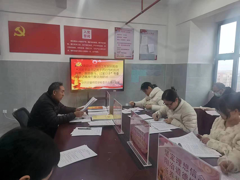 3 月 26 日,在灵璧师范学校党委的领导下,活动由各支部书记主持。全体党员分支部学习了《习近平总书记有关厉行节约反对浪费、艰苦奋斗、过紧日子等重要讲话精神》。学习后,党员们结合工作实际,围绕习近平总书记的重要讲话精神展开了深入的交流研讨。