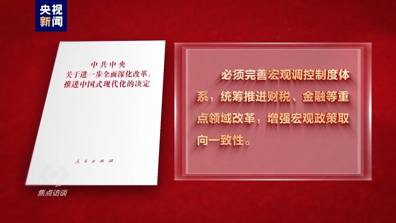 科学的宏观调控、有效的政府治理是发挥社会主义市场经济体制优势的内在要求。《决定》对健全宏观经济治理体系作出部署,明确提出必须完善宏观调控制度体系,统筹推进财税、金融等重点领域改革,增强宏观政策取向一致性。围绕深化财税体制改革,《决定》从多个方面作出部署。