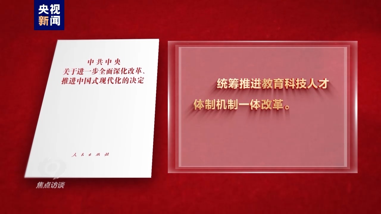 教育、科技、人才是中国式现代化的基础性、战略性支撑。《决定》把创新摆在突出位置,鲜明提出“统筹推进教育科技人才体制机制一体改革”,这是继党的二十大对教育、科技、人才进行专章部署后,又一项重大战略部署。