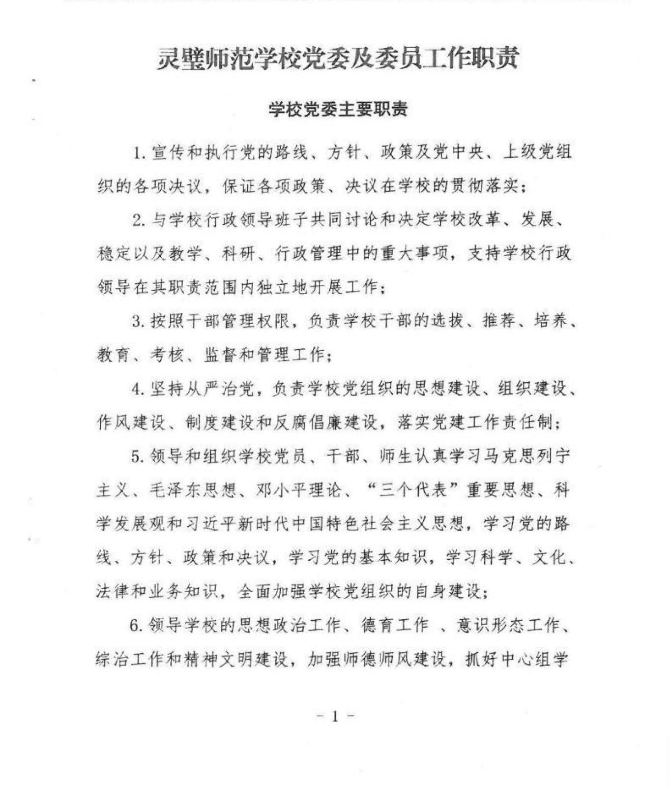 灵璧师范学校党委及委员工作职责