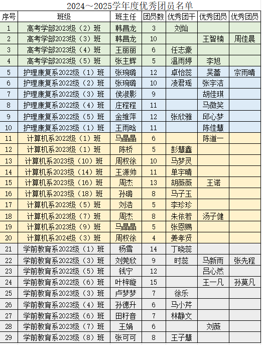 灵璧师范学校2024~2025学年度优秀团员、团支部名单