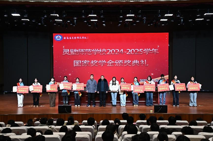 使命呼唤担当,榜样引领风尚。1月12日下午,灵璧师范学校报告厅内灯光璀璨,掌声雷动,2024-2025学年学生资助工作暨国家奖学金颁奖典礼隆重举行。校党委副书记朱会文、副校长刘广出席典礼并讲话,学生科负责人张标主持典礼。11名国奖获得者和家长与千余名学生代表共同见证了这一荣耀时刻。