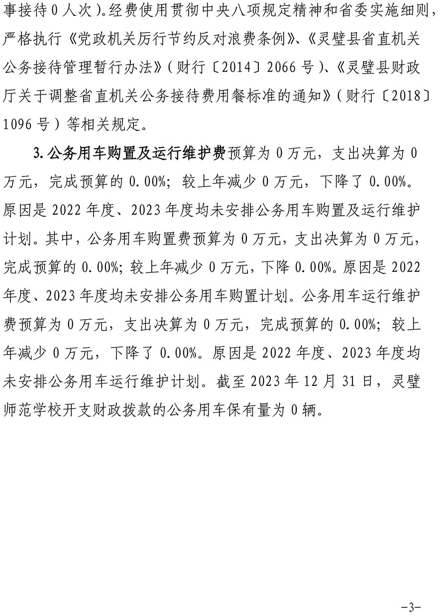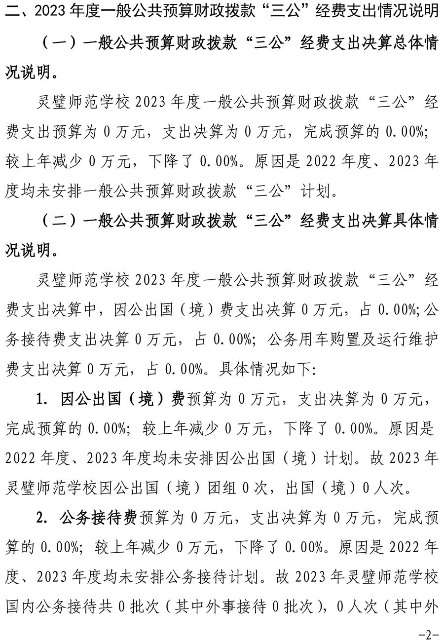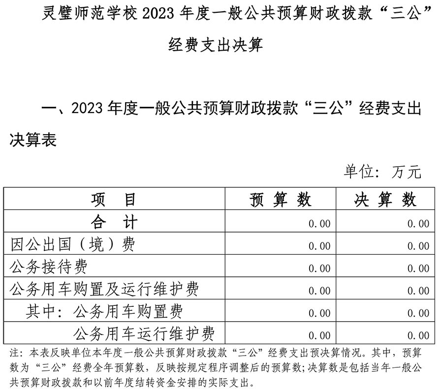 灵璧师范学校2023年度一般公共预算财政拨款“三公”经费支出决算