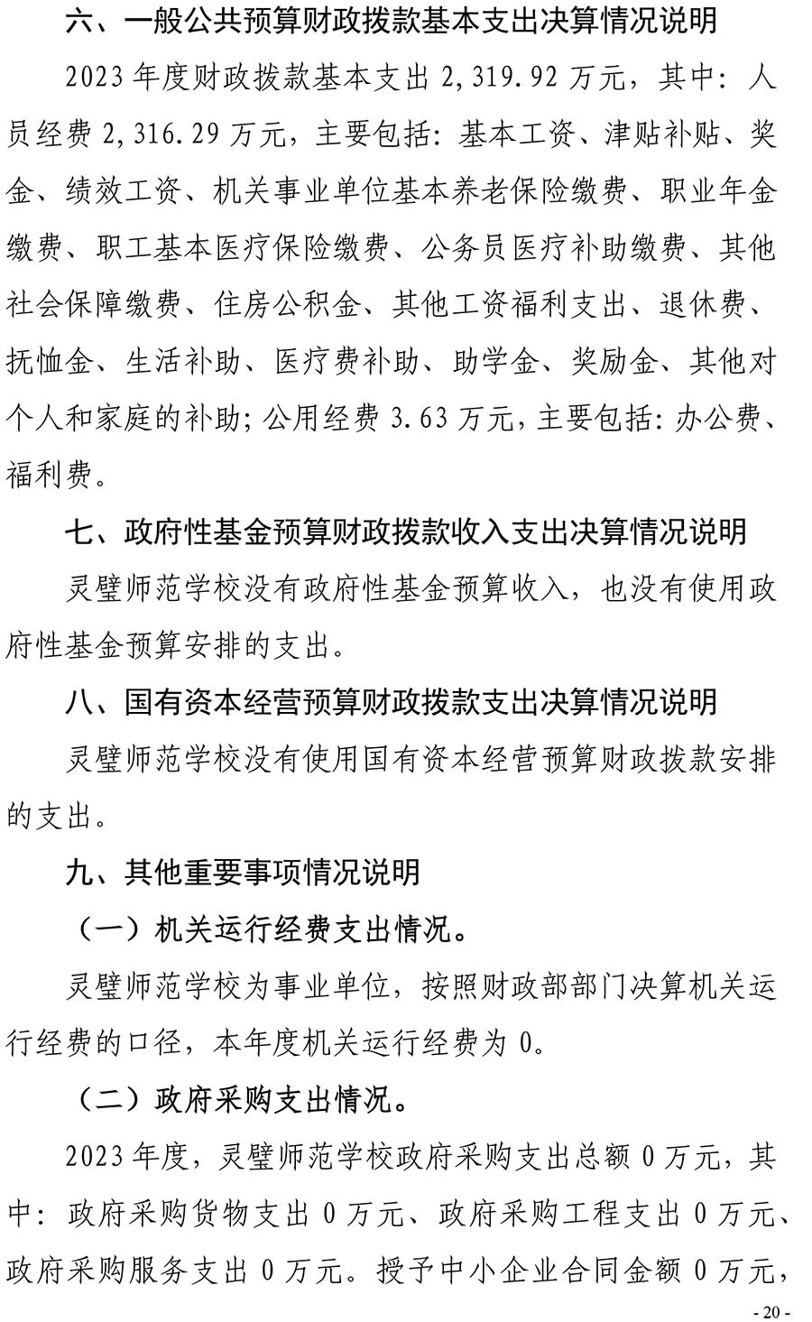 灵璧师范学校2023年度一般公共预算财政拨款“三公”经费支出决算