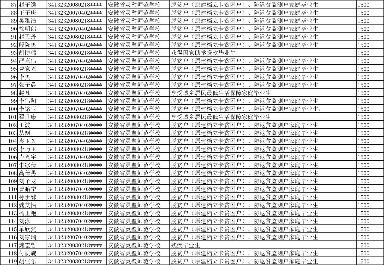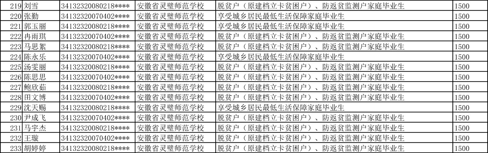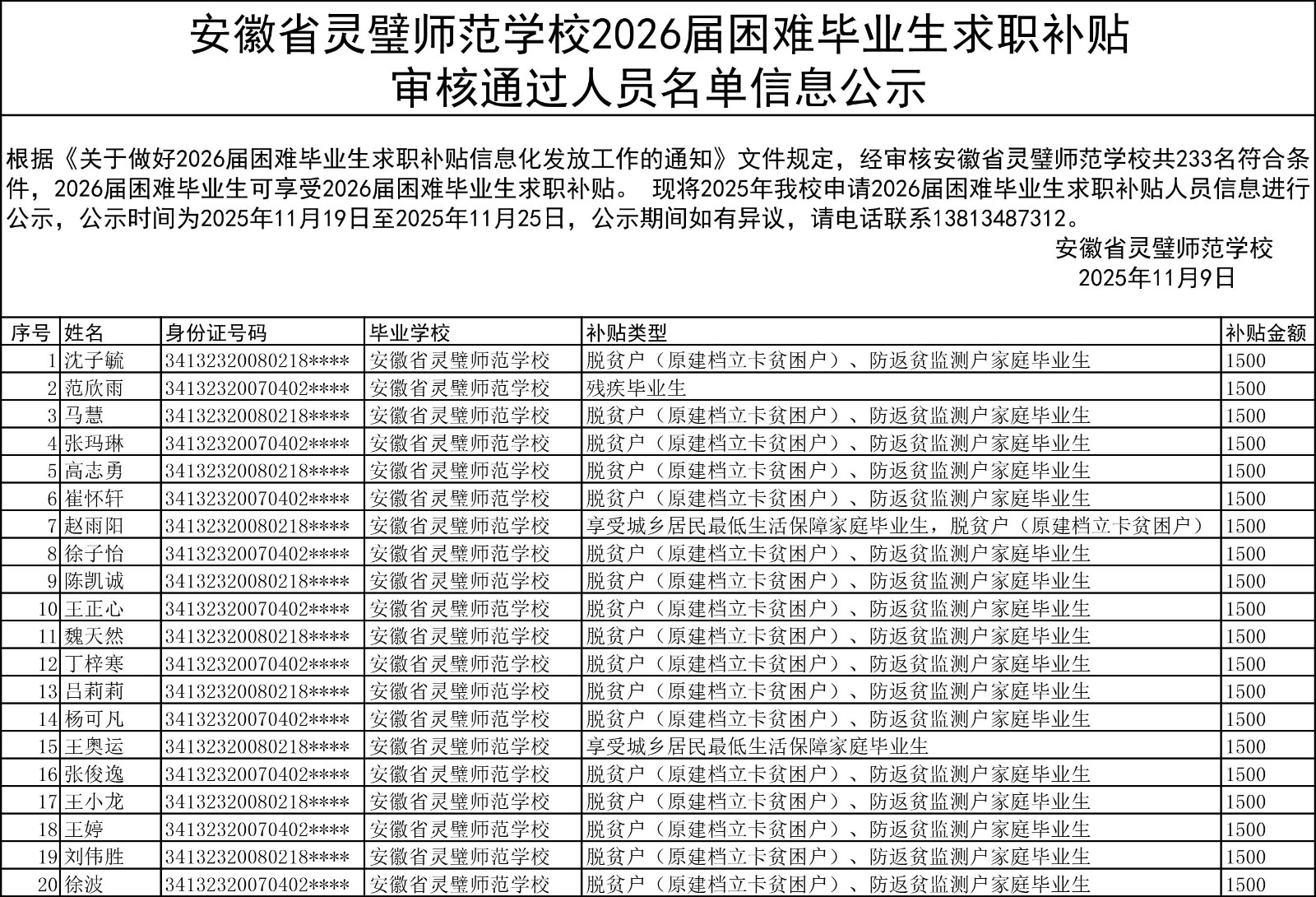 安徽省灵璧师范学校2026届困难毕业生求职补贴审核通过人员名单信息公示