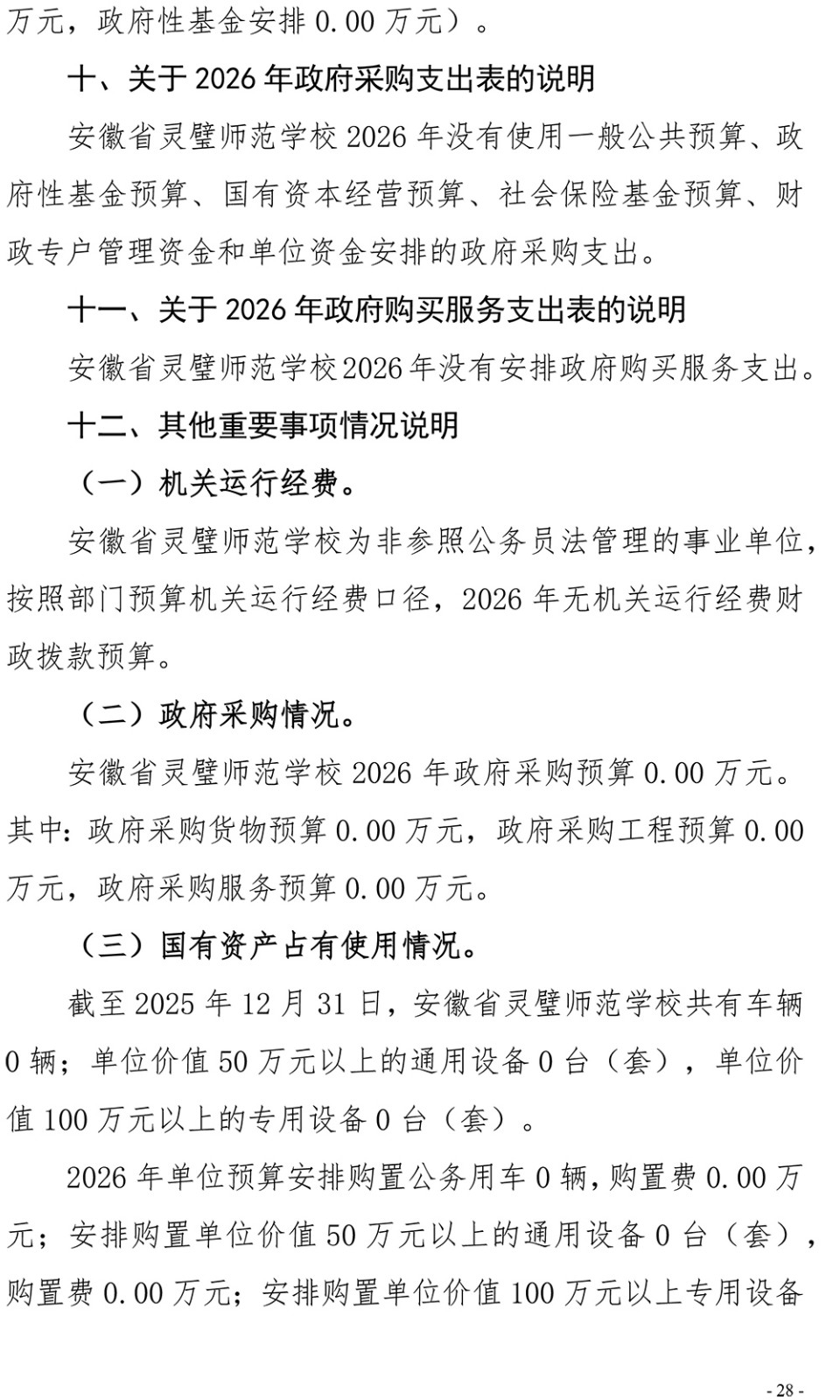 安徽省灵璧师范学校2026年单位预算