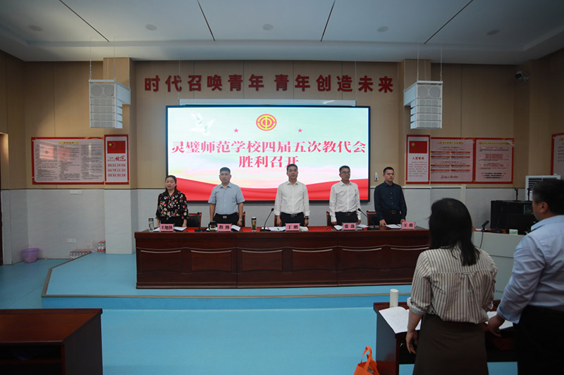 5月17日下午,灵璧师范学校隆重召开第四届教职工代表大会第五次会议。校党委书记、校长丁刚,副校长张劲,纪委书记程博,党委委员、招就办主任王将,校工会主席王旭侠出席了本次大会,学校37名教职工代表参加了会议。大会由张劲主持。